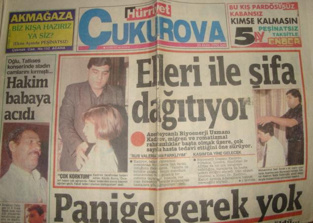 1992-ci ildə Portuqaliyaya (Lissabon) aldığı konqres dəvəti üçün sponsor aramaqla məşğul olduğu zaman yenə də tam bir təsadüf əsəri yolu 30-35 illik xroniki bir miqren xəstəsini müalicə etmək üçün qardaş Türkiyənin Adana şəhərinə yönəlmişdir.Xəstə yaxşılaşdıqdan sonra "Hürriyyət" Çukurova qəzetində bu haqda yazı getmiş,doktorun xüsusi gücü və istedadı işıqlandırılmışdır.